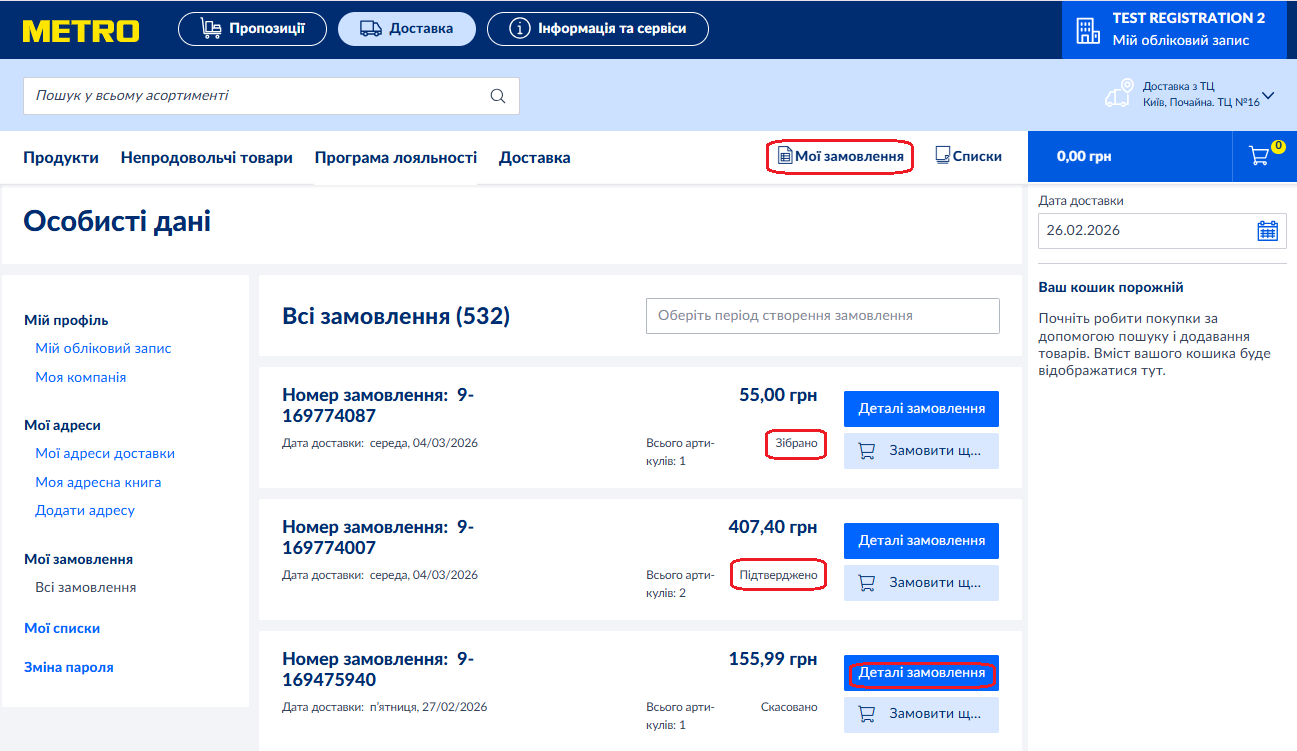 Крім того, ви маєте можливість відстежувати свої замовлення за допомогою мобільного застосунку METRO у розділі "Замовлення". Завантажити додаток можна тут.