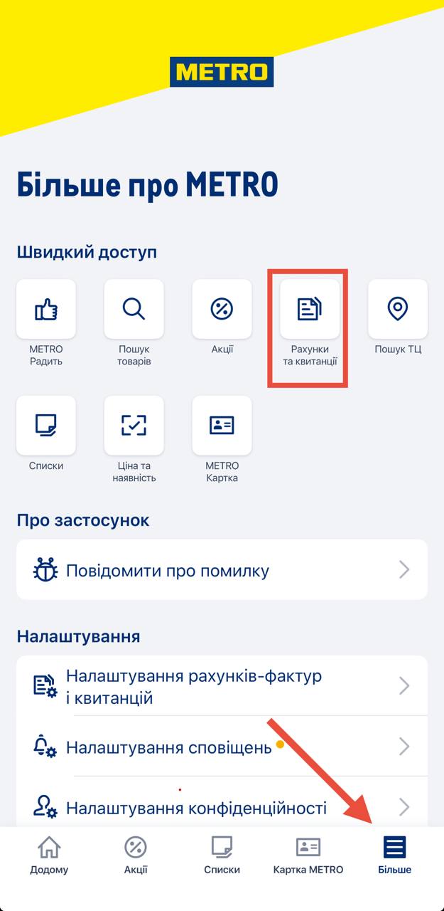 Після проходження верифікації з прив’язаною картою всі документи доступні в особистому кабінеті на сайті METRO.